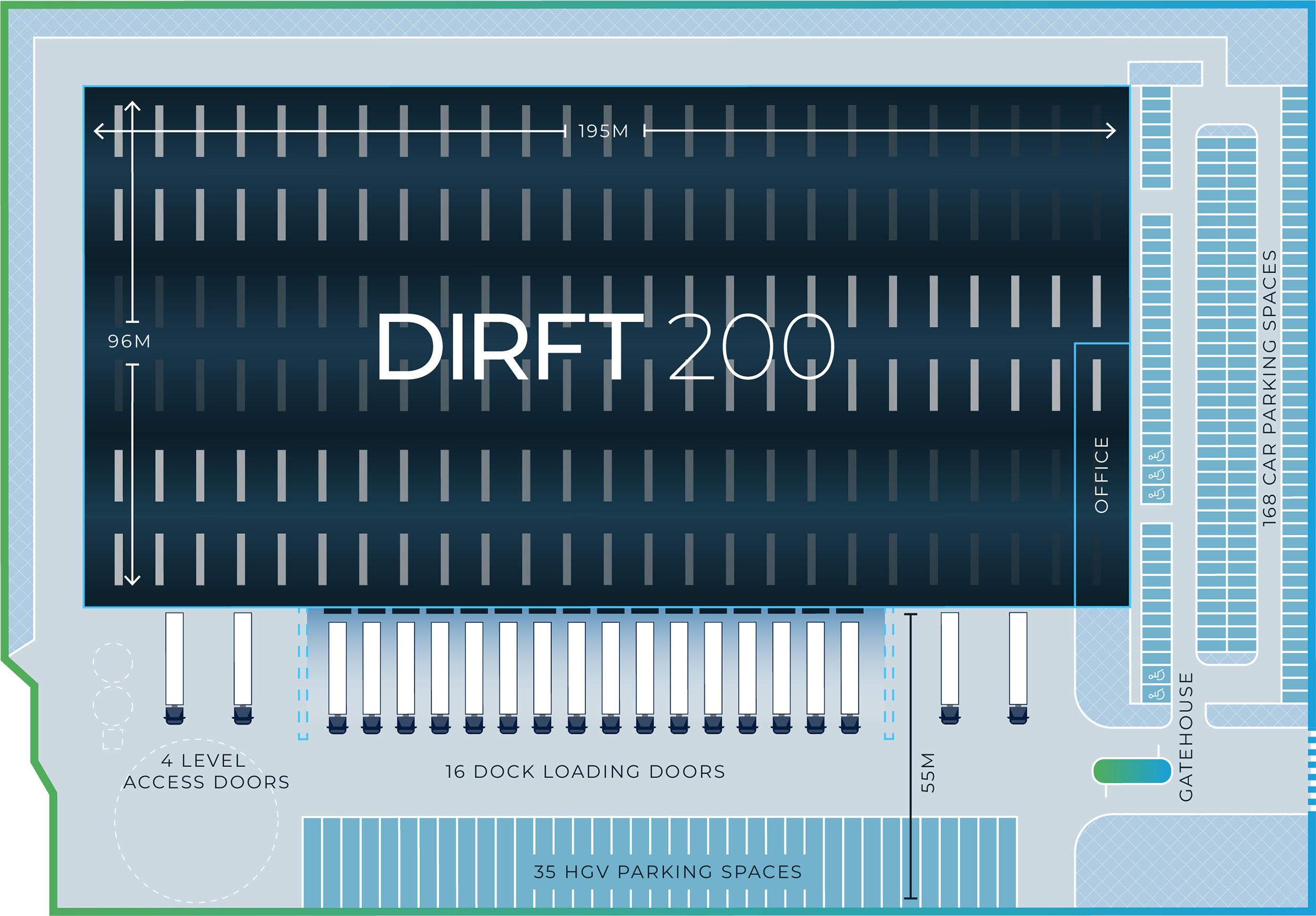 DIRFT 200 is a detached warehouse with a two storey office and ancillary areas located on the UK’s premier inter-modal rail connected logistics park.